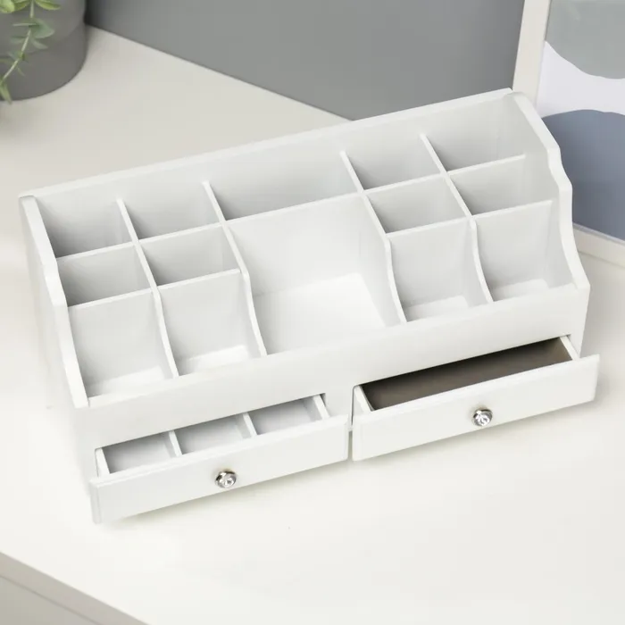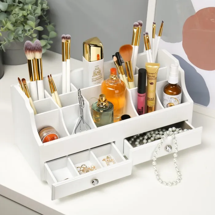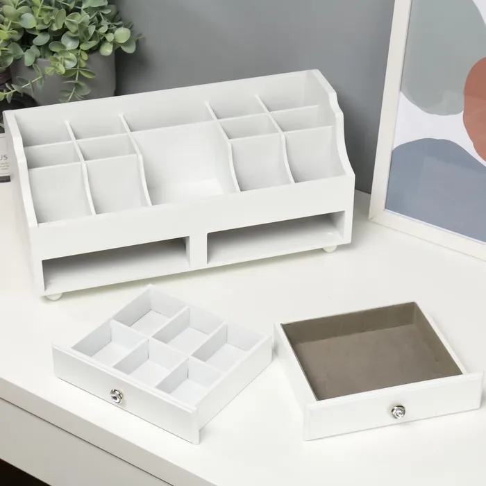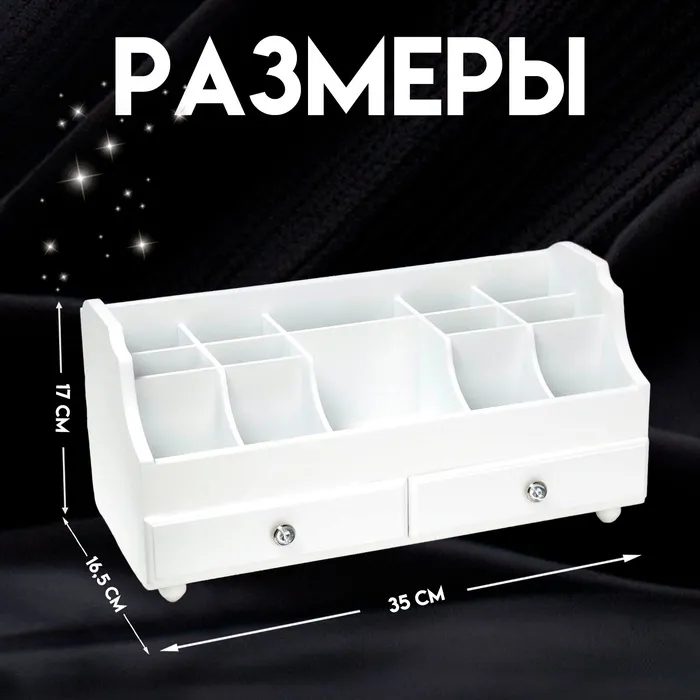 Шкатулка для украшений, косметики, дерево, 2 ящика, белый, 35х16,5х17 см — Характеристики