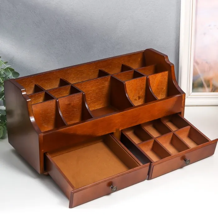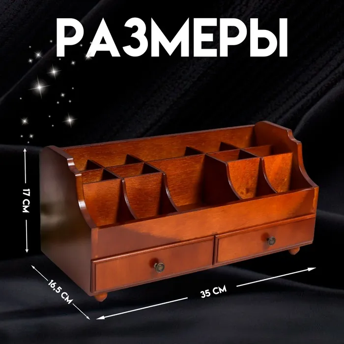Шкатулка для украшений, косметики, дерево, 2 ящика, коричневый, 35х16,5х17 см — Характеристики