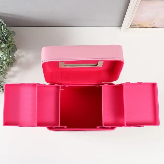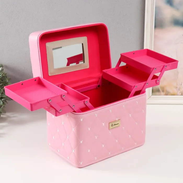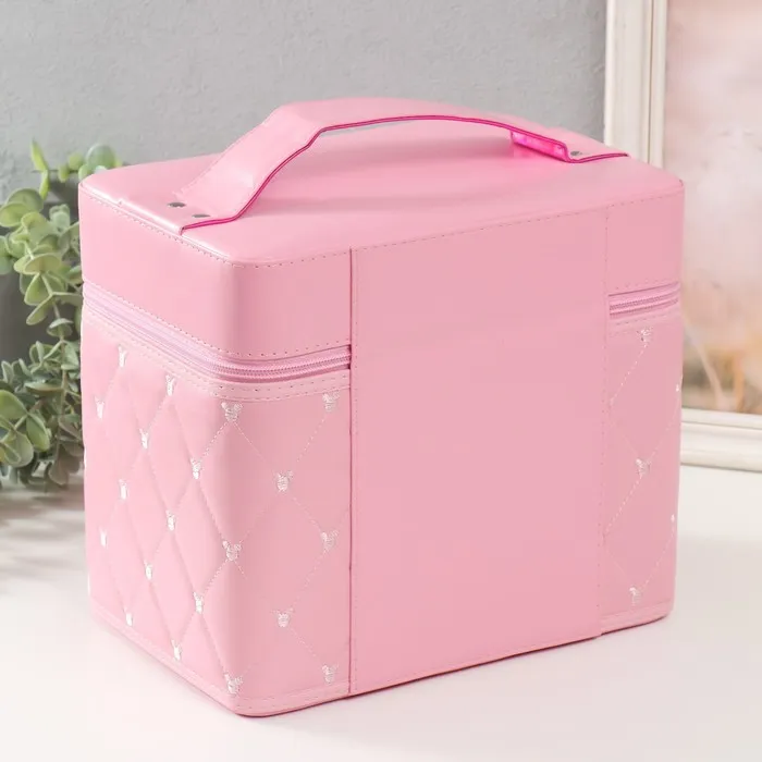 Шкатулка для украшений, косметики «Ромбы и мишки. Этажи», искусственная кожа, розовая, 24.5×20.5×27 см — Характеристики