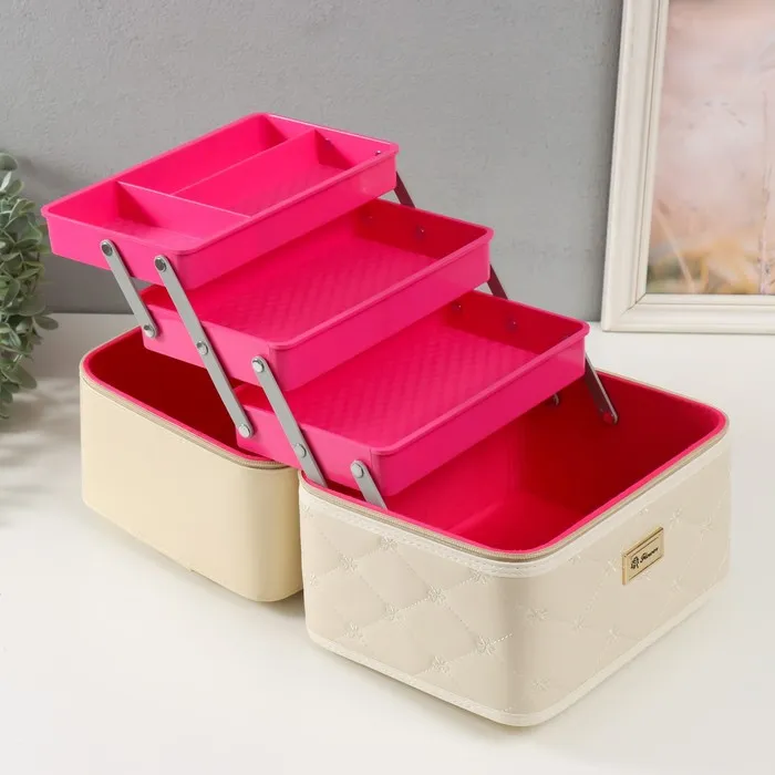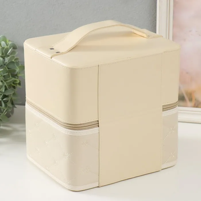 Шкатулка для украшений, косметики «Ромбы и цветы. Этажи», искусственная кожа, молочная, 24.5×20.5×27 см
