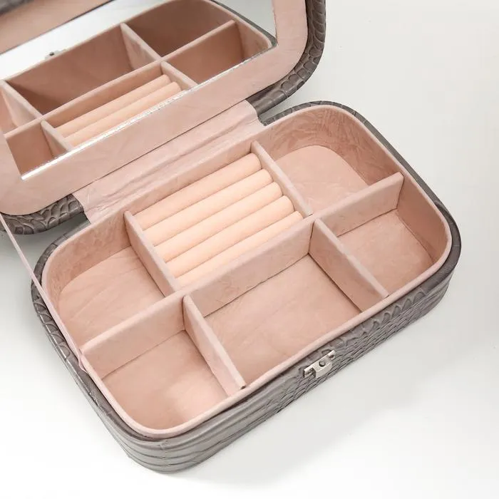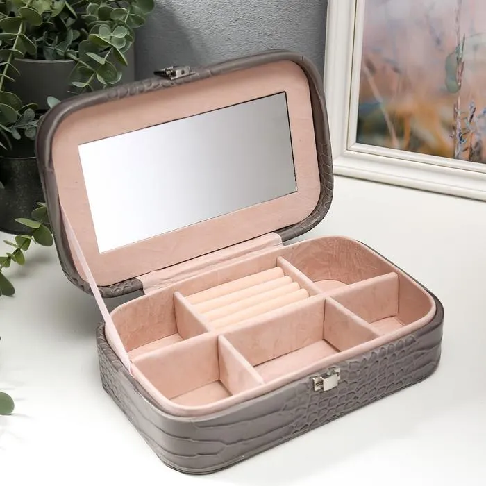 Шкатулка для украшений «Кожа питона», с зеркалом, искусственная кожа, с замком, серая, 7×22.5×14.5 см — Характеристики