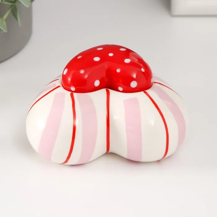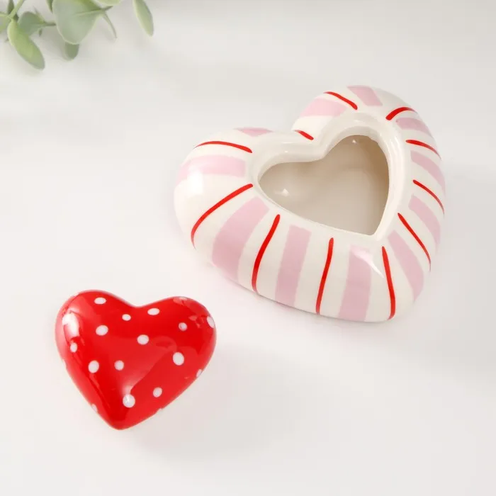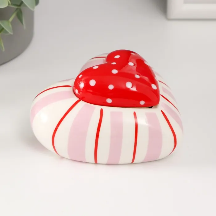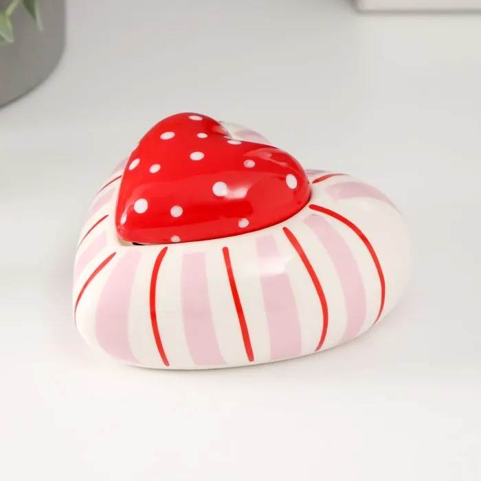 Шкатулка для украшений «Красное сердце в горошек, полосатое», керамика, 10.2×10×5 см — Характеристики
