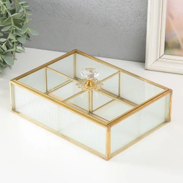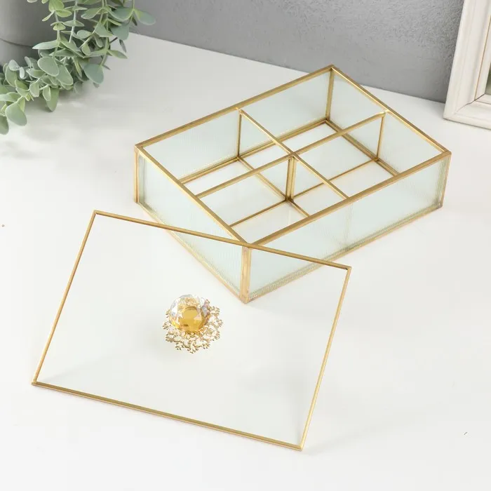 Шкатулка для украшений «Кристалл», стекло с металлическим каркасом, прозрачная рябь, 16.1×22.1×8.5 см — Характеристики