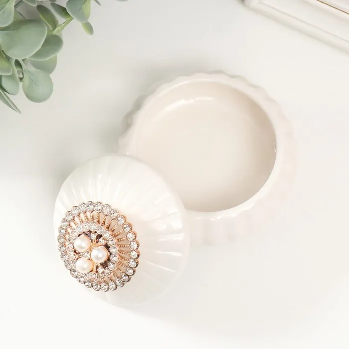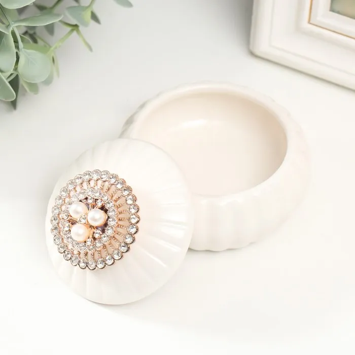 Шкатулка для украшений «Круг со стразами и жемчужиной», керамика, 7.7×7.7×6 см — Характеристики