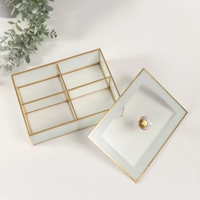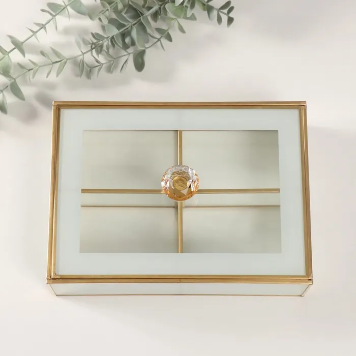 Шкатулка для украшений «Лаконичность», стекло с металлическим каркасом, прозрачный белый, 16×22×9 см — Характеристики
