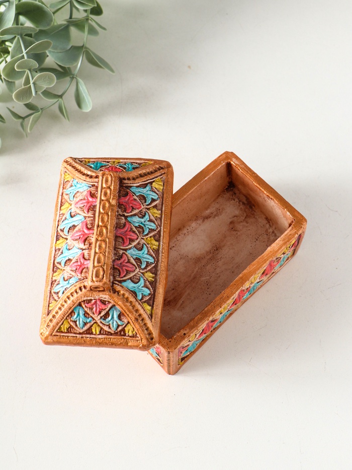 Практичность и эстетика: Прочный гипс обеспечивает шкатулке устойчивость. Покрытие защищает от пыли и влаги. «Цветной ларец» — это не просто коробочка, а законченный аксессуар, который говорит о вашем вкусе. Он станет приятным подарком для близкого человека или удачным приобретением для организации личного пространства.