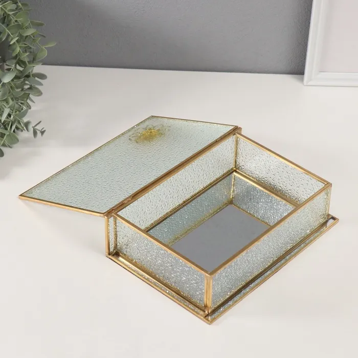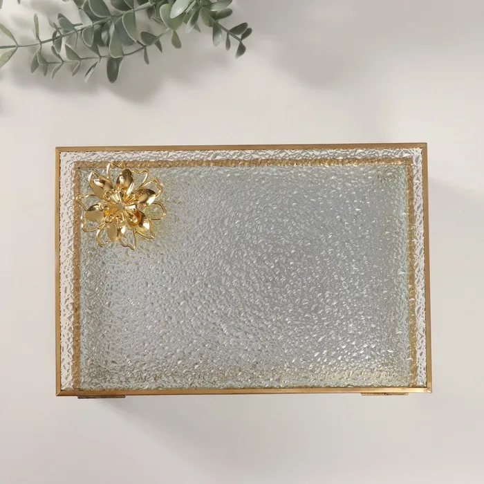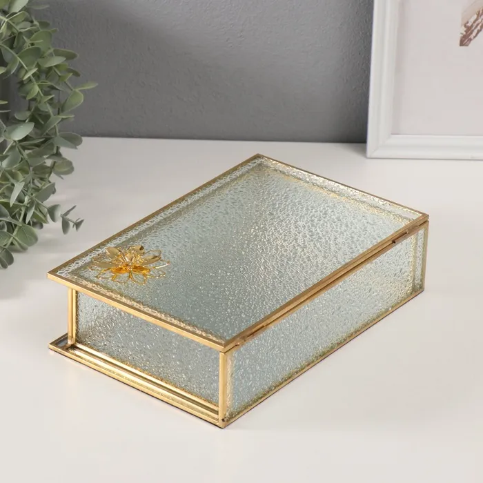 Шкатулка для украшений «Лотос», стекло с металлическим каркасом, прозрачная рябь, 16×24×7 см — Характеристики