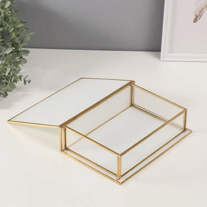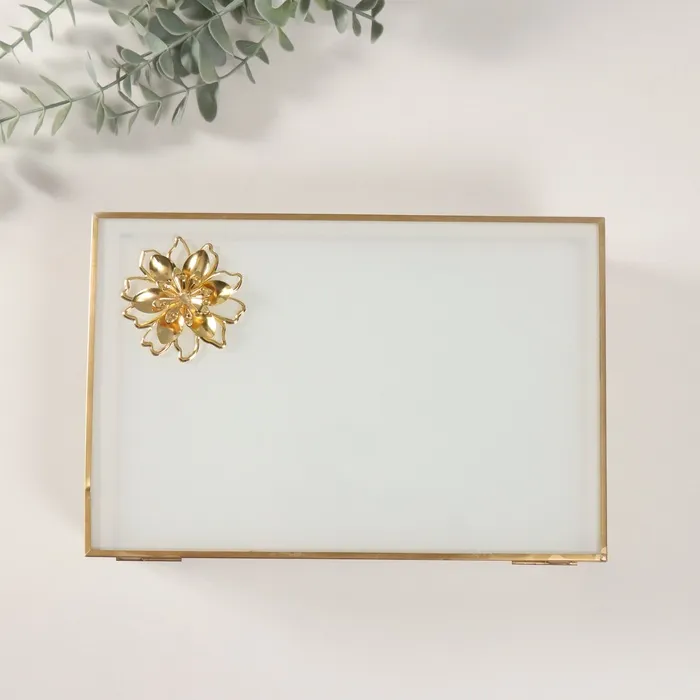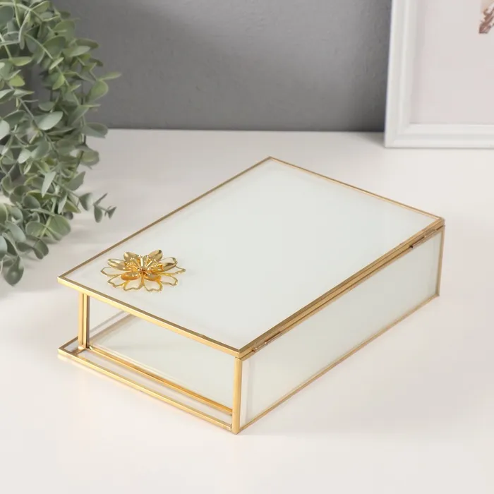 Шкатулка для украшений «Лотос», стекло с металлическим каркасом, прозрачный белый, 16×24×7 см — Характеристики