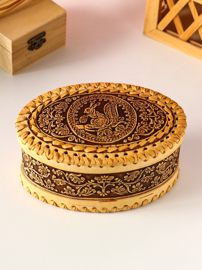 Природное тепло и уют для ваших драгоценностей. Овальная шкатулка из бересты с белочкой — это уникальный аксессуар ручной работы, созданный для хранения самых ценных мелочей. Натуральные материалы и душевный образ делают ее особым предметом в вашем доме.