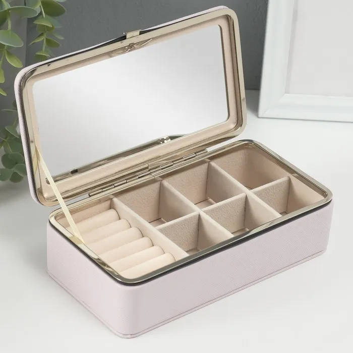 Шкатулка для украшений «Мелкая рябь», с зеркалом, искусственная кожа, розовая, 10×18×6 см — Характеристики
