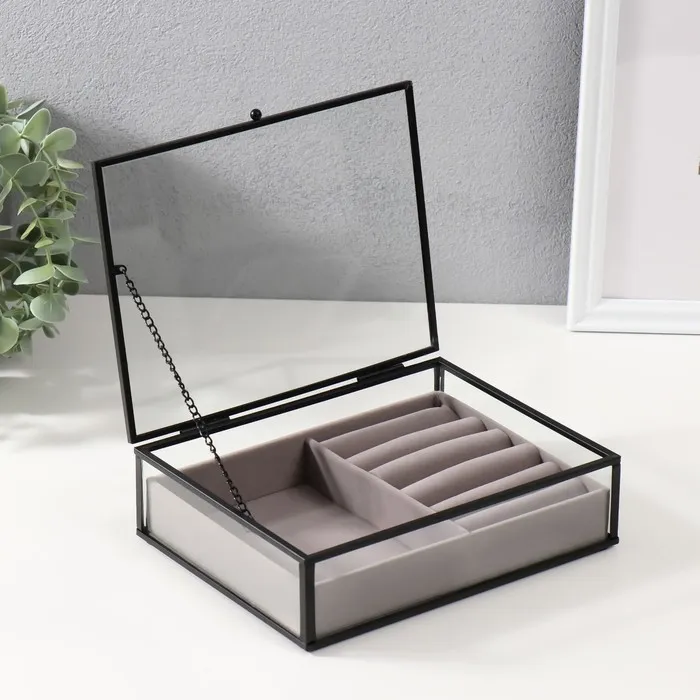 Шкатулка для украшений «Мерлин», стекло с металлическим каркасом, светлая, 16×20×6 см — Характеристики