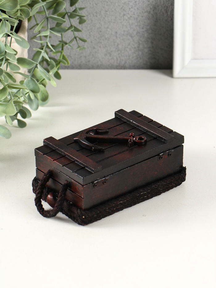 Шкатулка для украшений «Морской сундук с якорем», с ручкой, дерево, красно-коричневая, 12.8×8×5.5 см — Характеристики