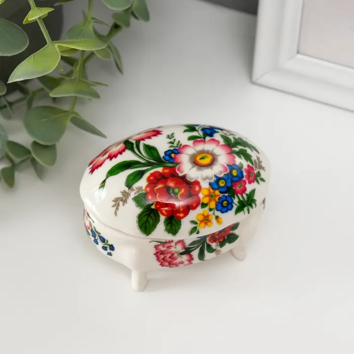 Шкатулка для украшений на ножках «Гвоздики», керамика, 6.1×7.7×4.8 см — Характеристики