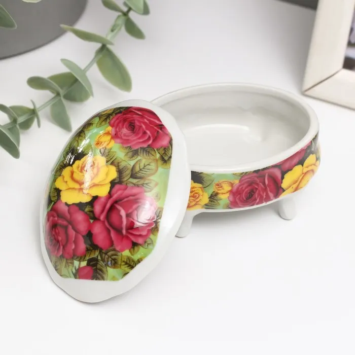 Шкатулка для украшений на ножках «Куст с розами», керамика, 6.1×7.7×4.8 см — Характеристики