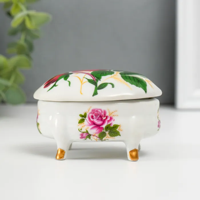 Шкатулка для украшений на ножках «Роза», керамика, 6.1×7.7×4.8 см