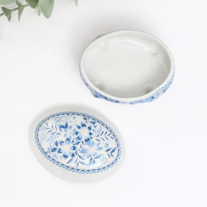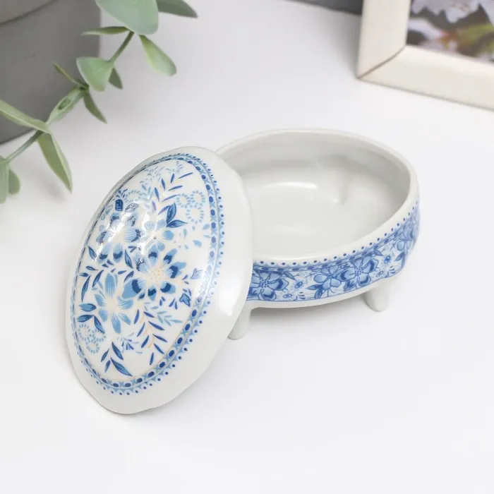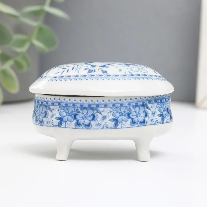 Шкатулка для украшений на ножках «Синие цветочки», керамика, 6.1×7.7×4.8 см — Характеристики