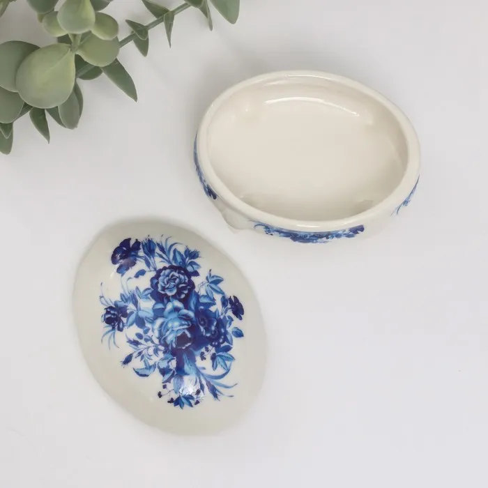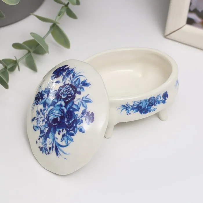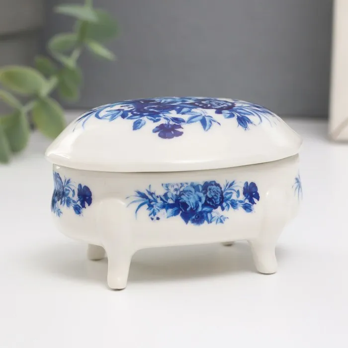 Шкатулка для украшений на ножках «Синие цветы», керамика, 6.1×7.7×4.8 см — Характеристики