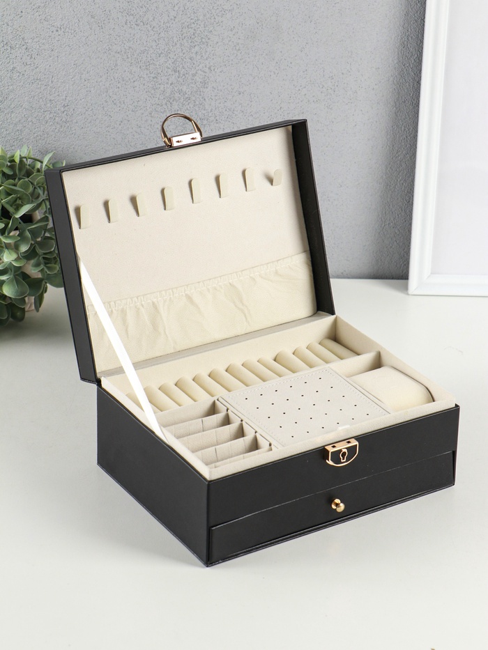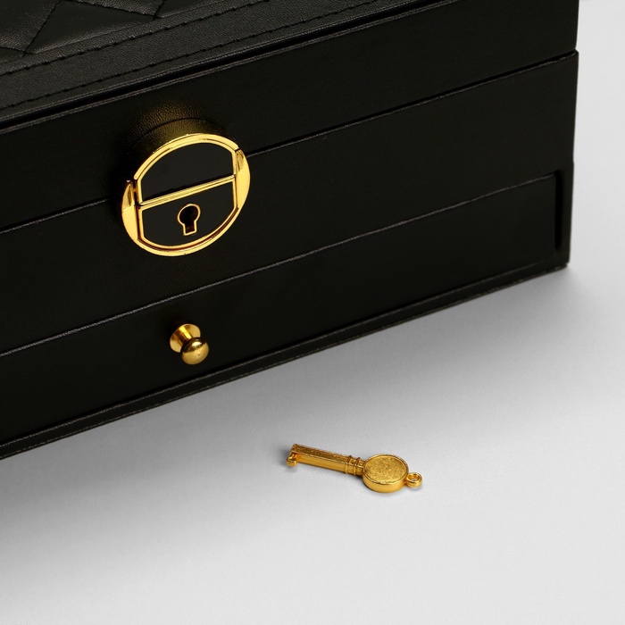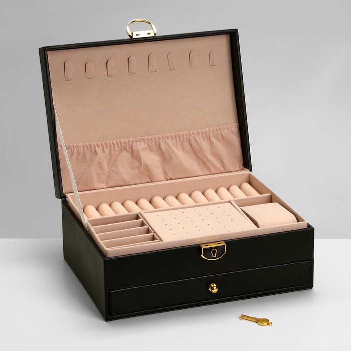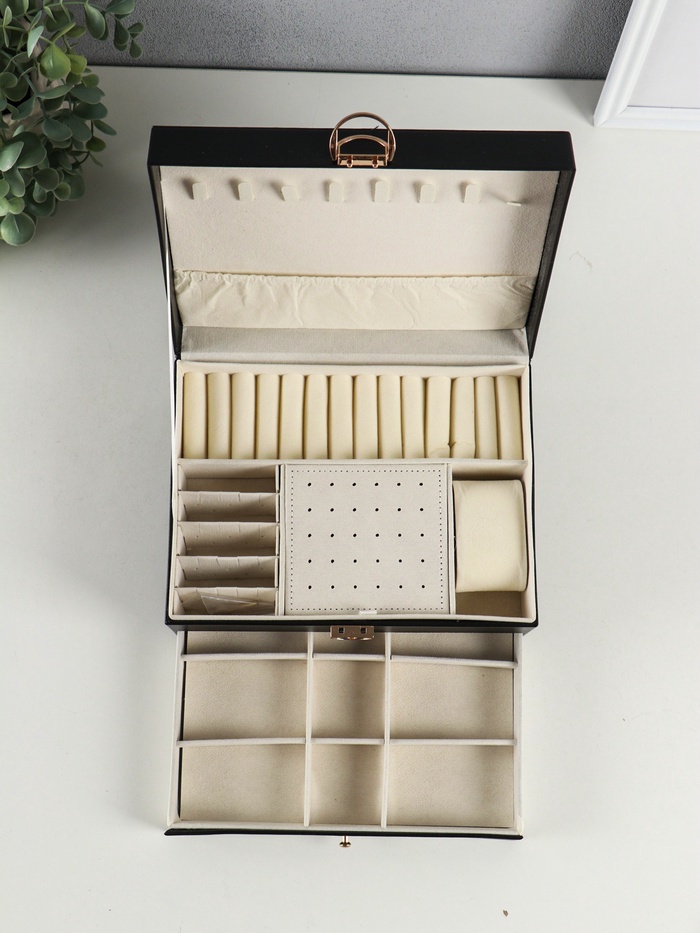 Шкатулка для украшений Netsai, 2 яруса, 17×23×10 см, чёрная — Характеристики