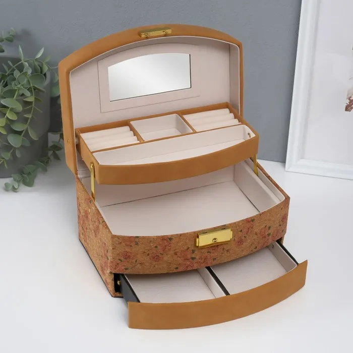 Шкатулка для украшений «Нежные розы», искусственная кожа, пробка, 16.5×22.5×13.5 см — Характеристики