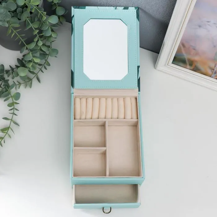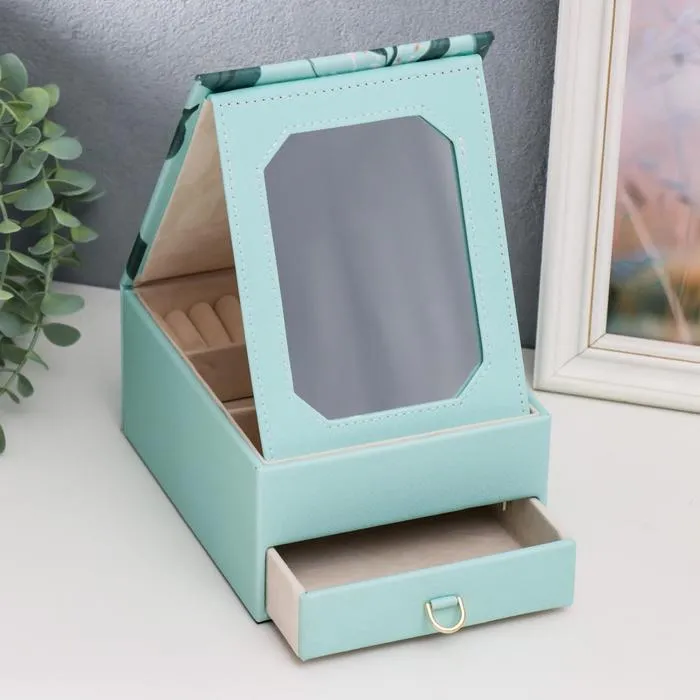 Шкатулка для украшений «Одуванчики и пальмовые листья», с зеркалом, искусственная кожа, 8.7×14.3×18.2 см — Характеристики