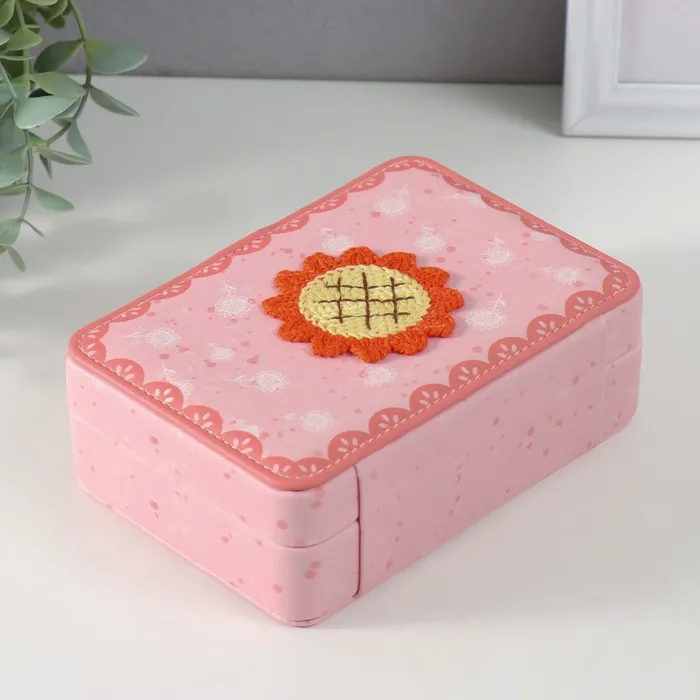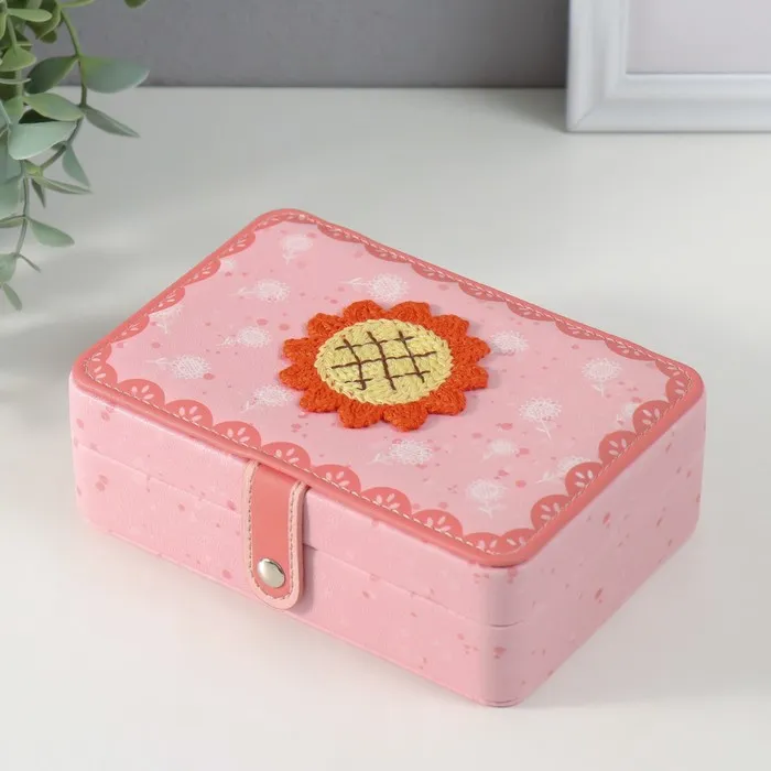 Шкатулка для украшений «Оранжевый подсолнух на розовом», искусственная кожа, 11×16×5.5 см — Характеристики