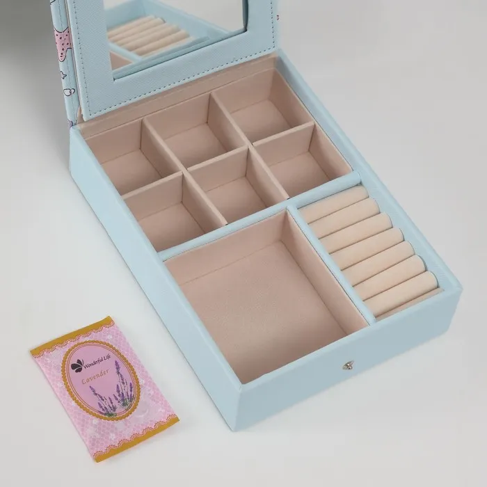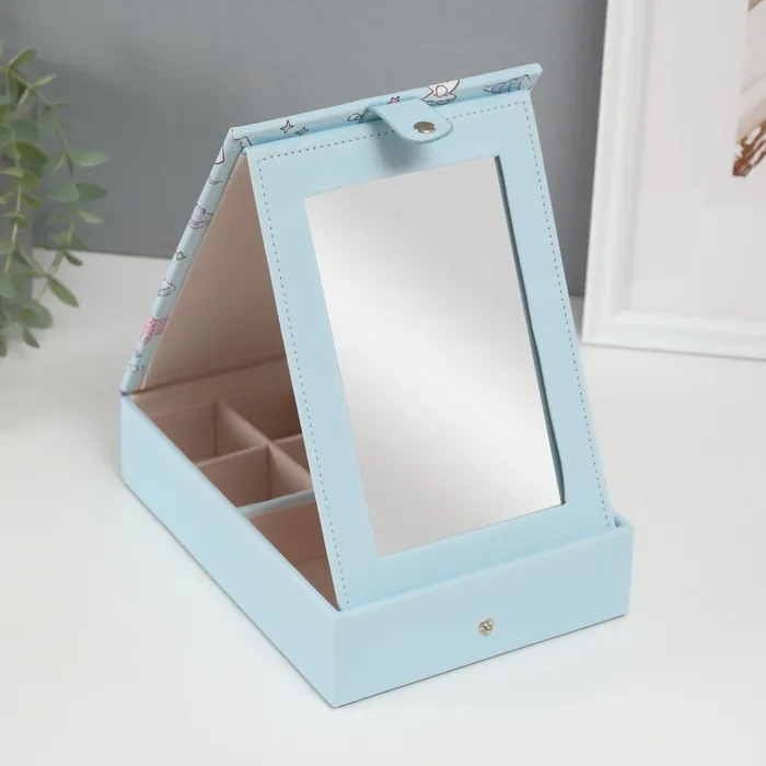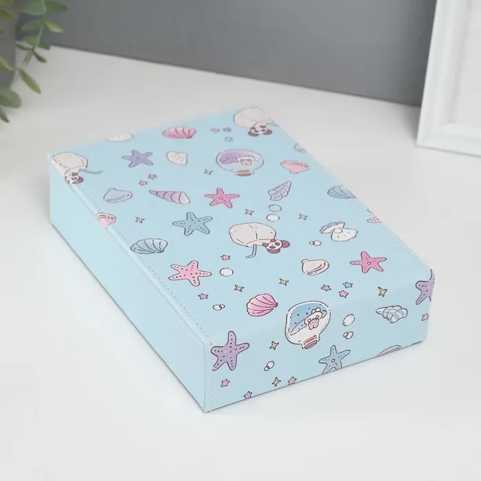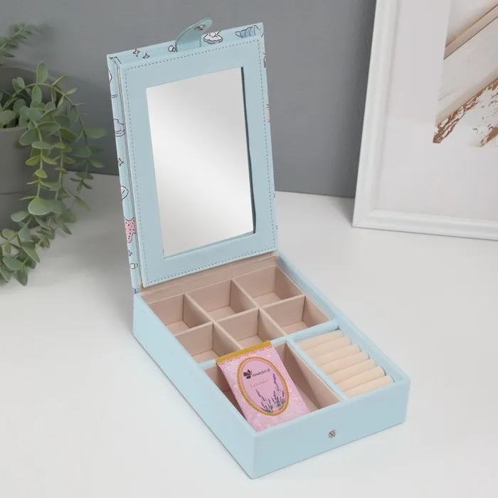 Шкатулка для украшений «Панда и ракушки», с зеркалом, искусственная кожа, голубая, 15×21.5×5.5 см — Характеристики