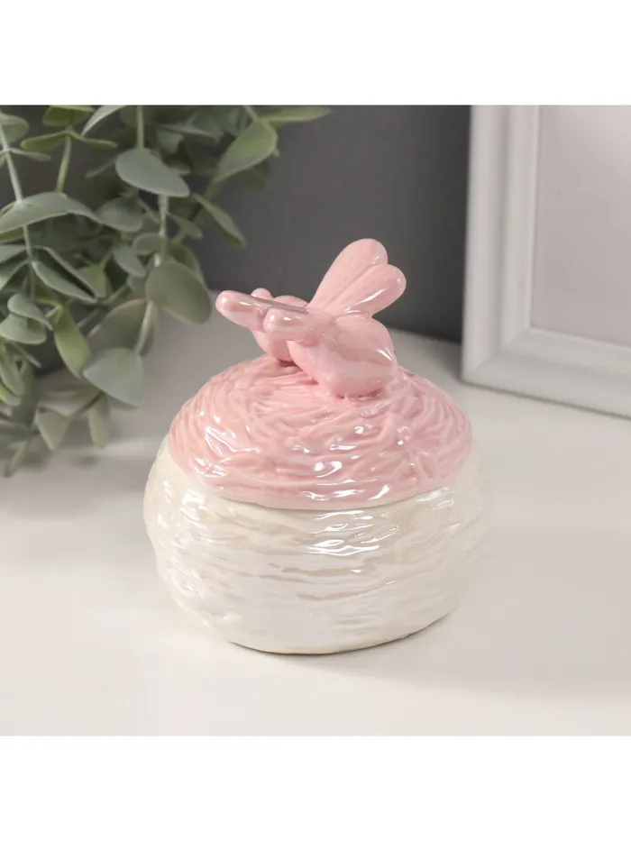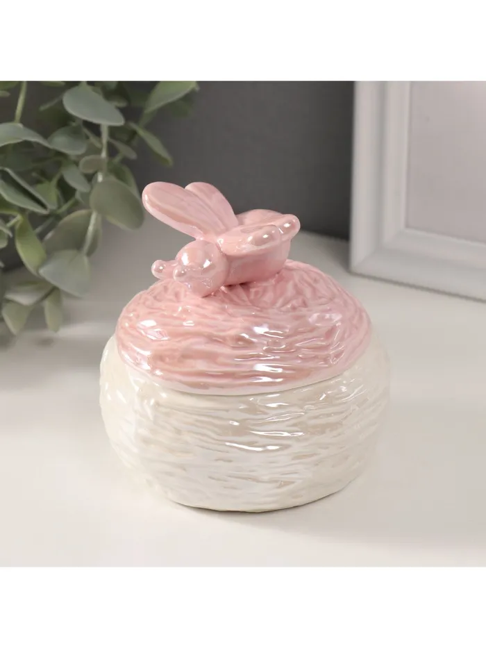 Шкатулка для украшений «Пчёлка на улье», керамика, розовый перламутр, 8.5×8.5×8 см — Характеристики