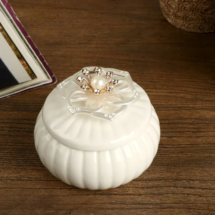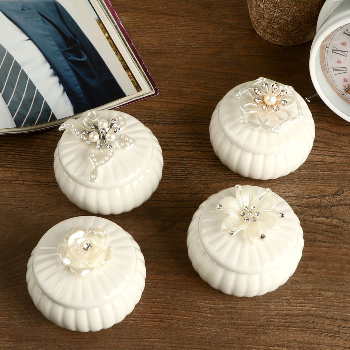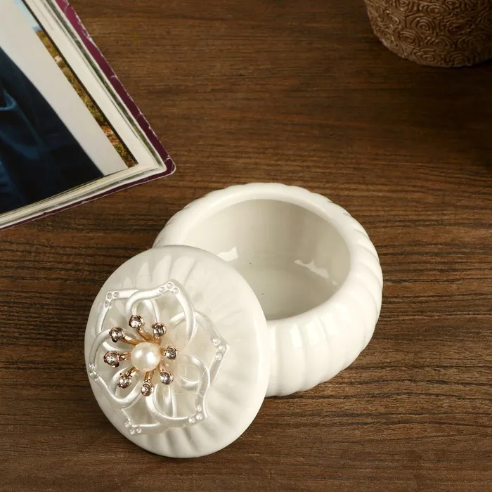 Шкатулка для украшений «Перламутровый цветок», для мелочей, керамика, 6.5×8.5×8.5 см, МИКС — Характеристики