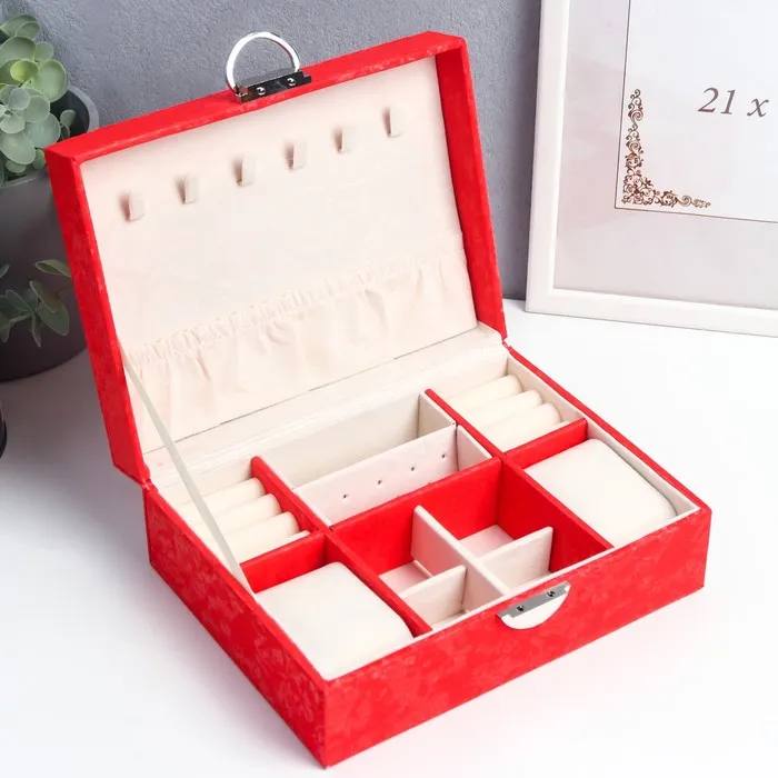 Шкатулка для украшений «Под бархат», под часы 2 отделения, с замком, искусственная кожа, алая, 8×15.5×20.5 см — Характеристики