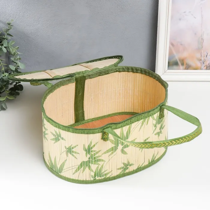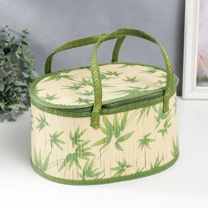 Шкатулка для украшений, подарков «Листья», с ручками, молния, бамбук, 16×20×30 см
