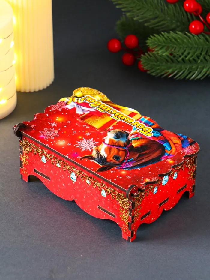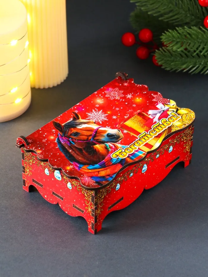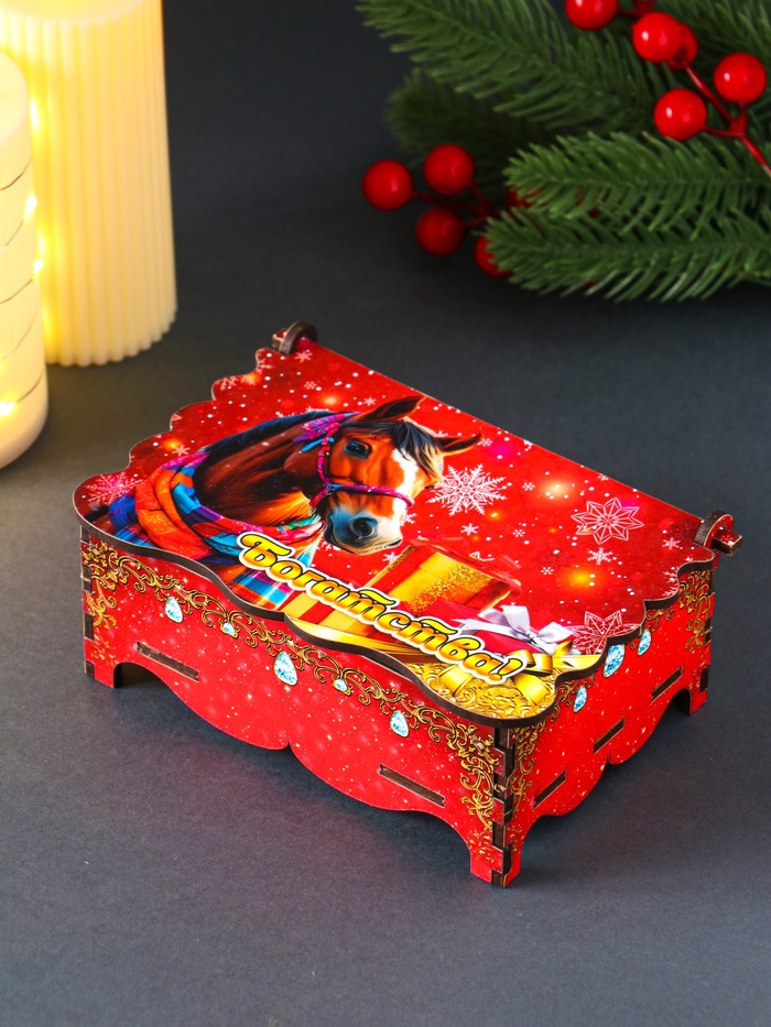 Шкатулка для украшений, подарков «Новогодний конь: Богатства», 14×9.3×6 см — Характеристики