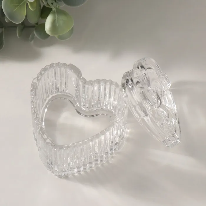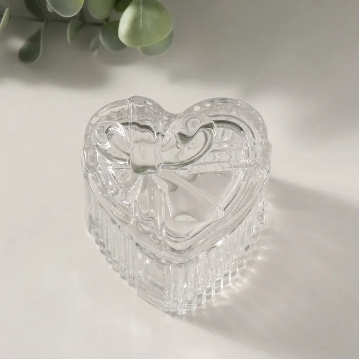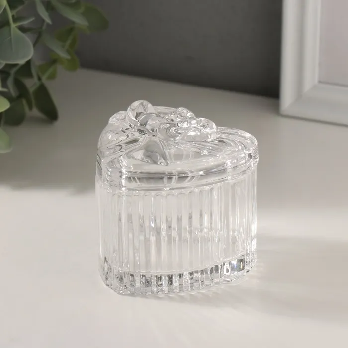 Шкатулка для украшений «Подарок сердце», стекло, прозрачная, 7.4×7.4×7.1 см — Характеристики