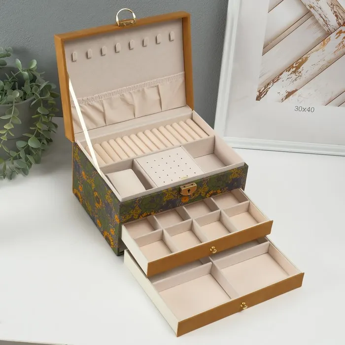 Шкатулка для украшений «Подсолнухи», искусственная кожа, пробка, 17.5×23.5×14 см — Характеристики