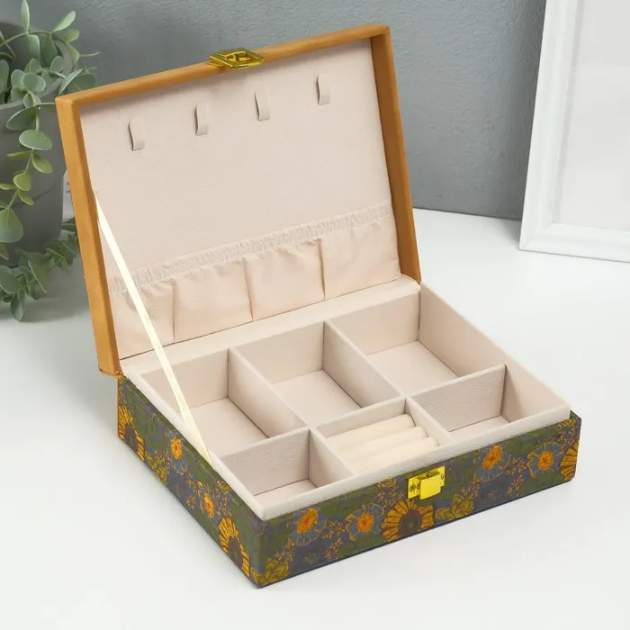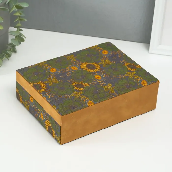 Шкатулка для украшений «Подсолнухи», искусственная кожа, с замком, 16.5×21.5×7 см — Характеристики