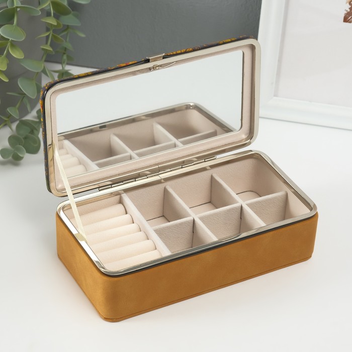 Шкатулка для украшений «Подсолнухи», с зеркалом, искусственная кожа, 10×18×6 см — Характеристики
