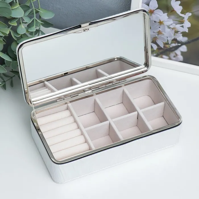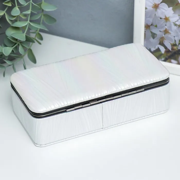 Шкатулка для украшений «Полосы. Текстура. Белые переливы», с зеркалом, искусственная кожа, 6×9.8×18.5 см — Характеристики