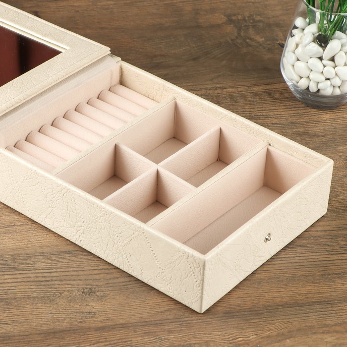 Шкатулка для украшений «Ромбики - кракелюр», кожзам, бежевая, 6×18×24 см — Характеристики