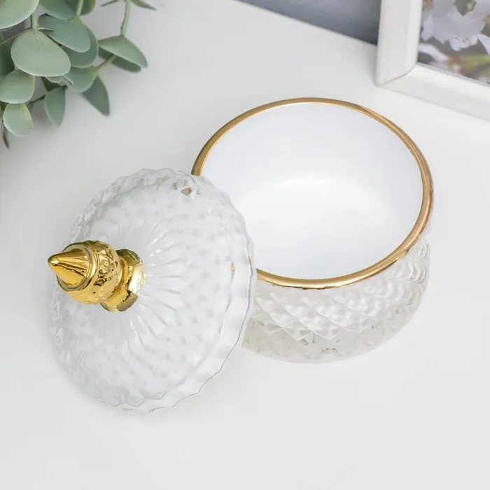 Шкатулка для украшений «Ромбы и купол», стекло, белый с золотом, 9.5×8.5×8.5 см — Характеристики