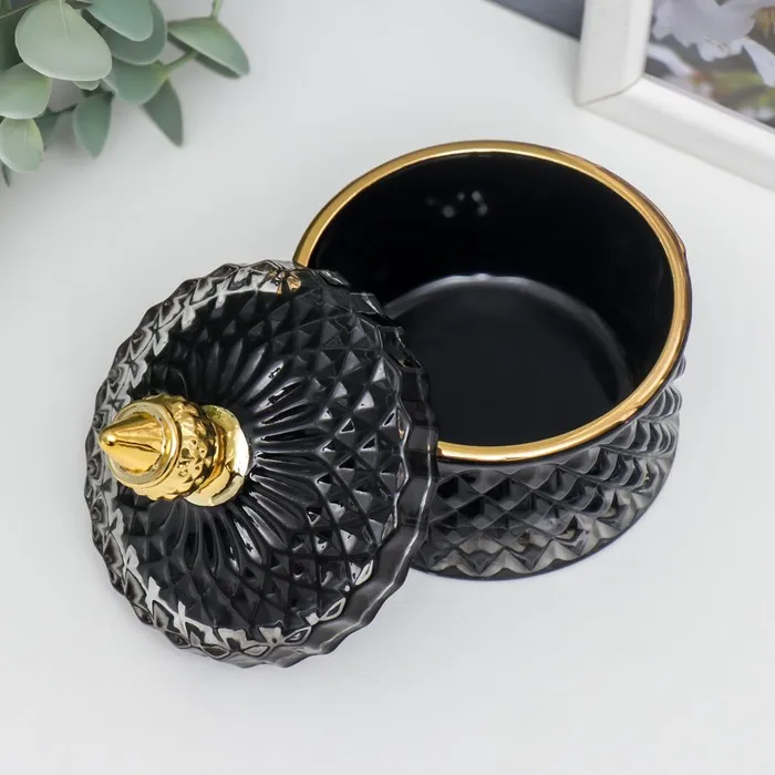 Шкатулка для украшений «Ромбы и купол», стекло, чёрный с золотом, 9.5×8.5×8.5 см — Характеристики