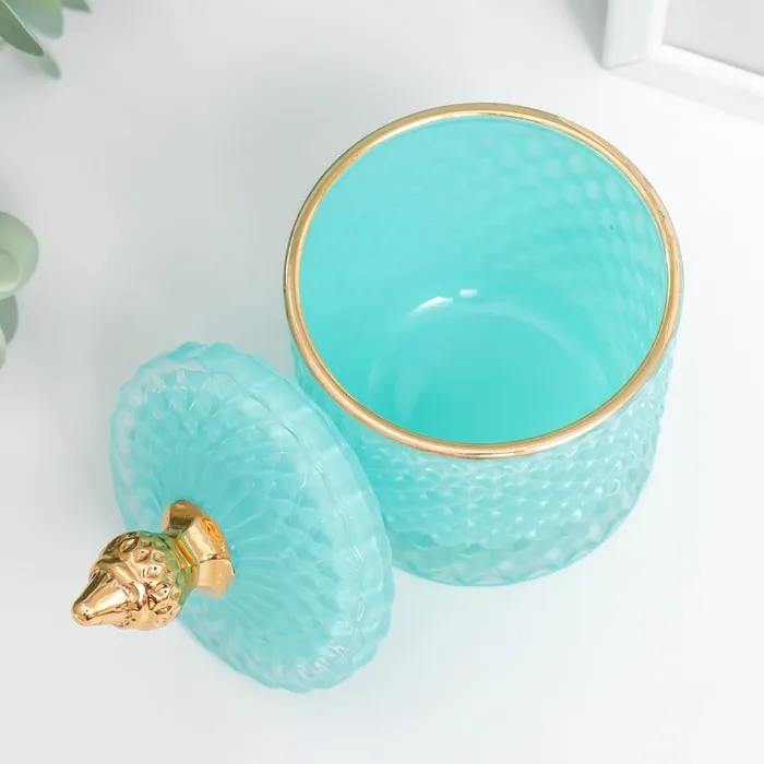 Шкатулка для украшений «Ромбы и купол», стекло, голубой с золотом, 14×8.2×8.2 см — Характеристики