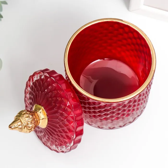 Шкатулка для украшений «Ромбы и купол», стекло, красный с золотом, 14×8.2×8.2 см — Характеристики