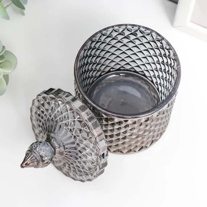 Шкатулка для украшений «Ромбы и купол», стекло, серый, 14×8.2×8.2 см — Характеристики