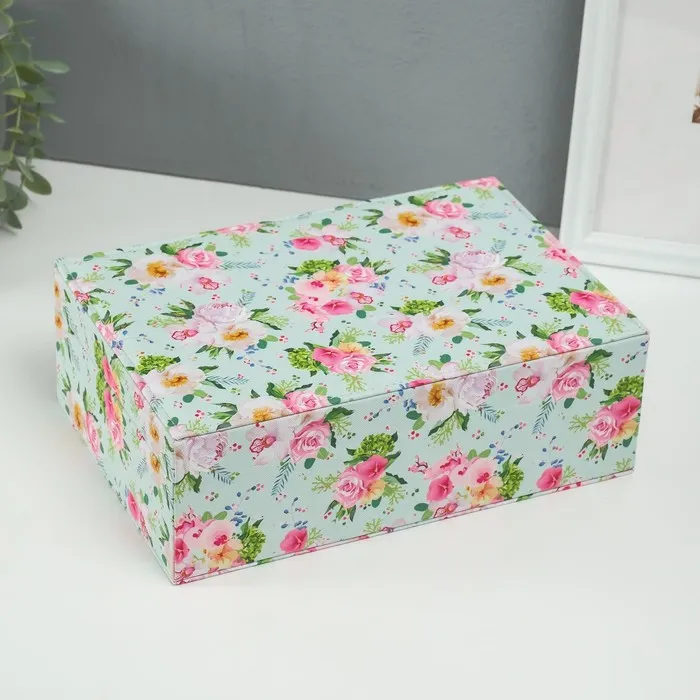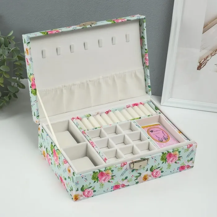 Шкатулка для украшений «Розы на зелёном», искусственная кожа, с замком, 18×27×9 см — Характеристики