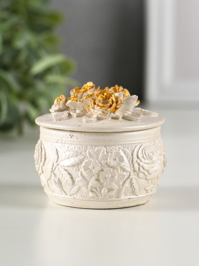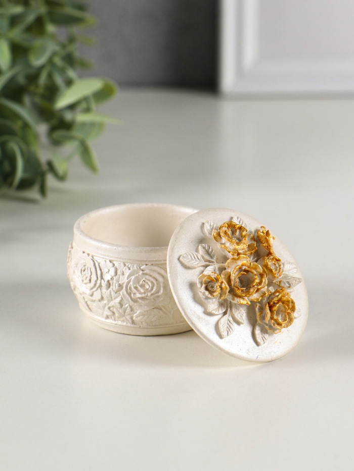 Шкатулка для украшений «Розы», с крышкой, гипс, 6×6 см, перламутр — Характеристики