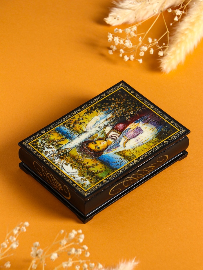 - Универсальный образ в подарок: Шкатулка с изображением женщины в русском стиле станет глубоким и символичным презентом. Такой подарок подчеркивает тонкий вкус и уважение к получателю, будь то на день рождения, 8 Марта или годовщину.