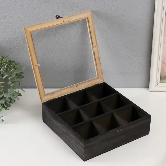 Шкатулка для украшений с делениями «Квадратная», дерево, 24×24×7.5 см — Характеристики