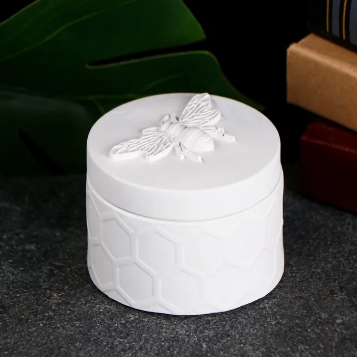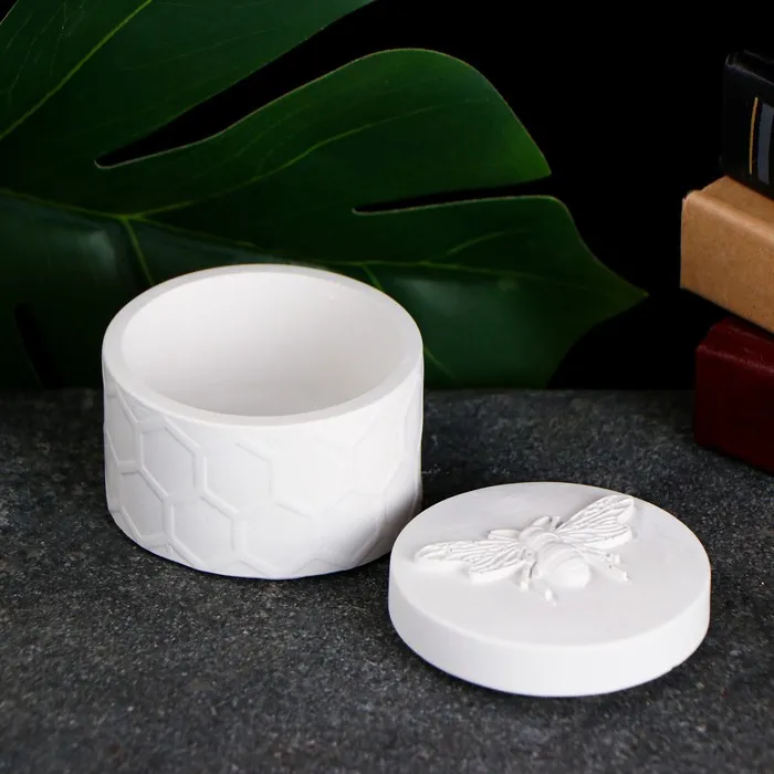 Шкатулка для украшений с крышкой «Пчелка», гипс, белый, 8×6 см — Характеристики