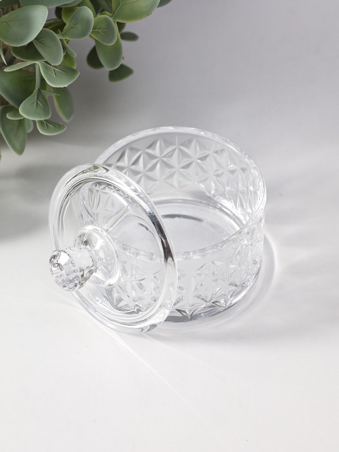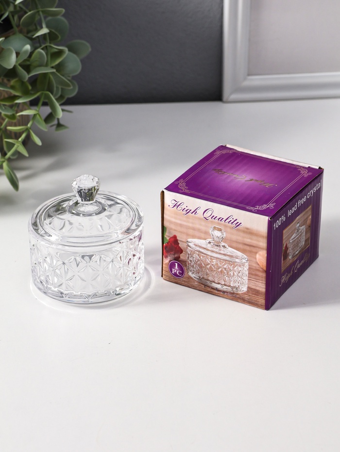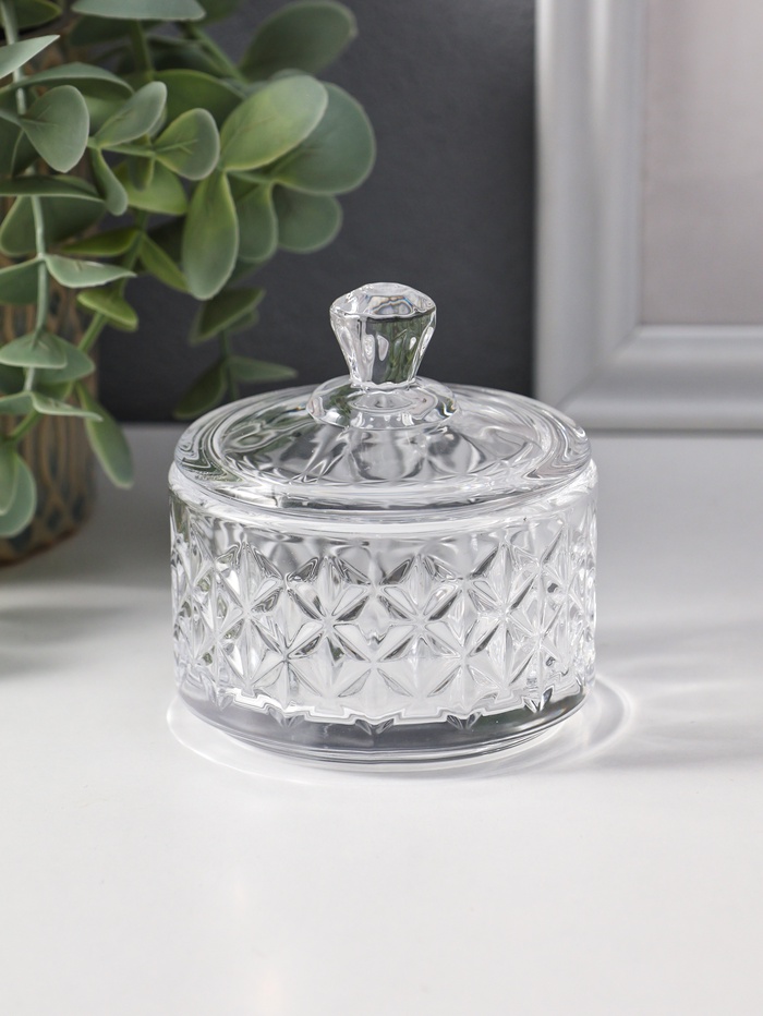 Шкатулка для украшений с крышкой «Ромбы и бриллиант», стекло, прозрачная, 6.5×6.5×7 см — Характеристики