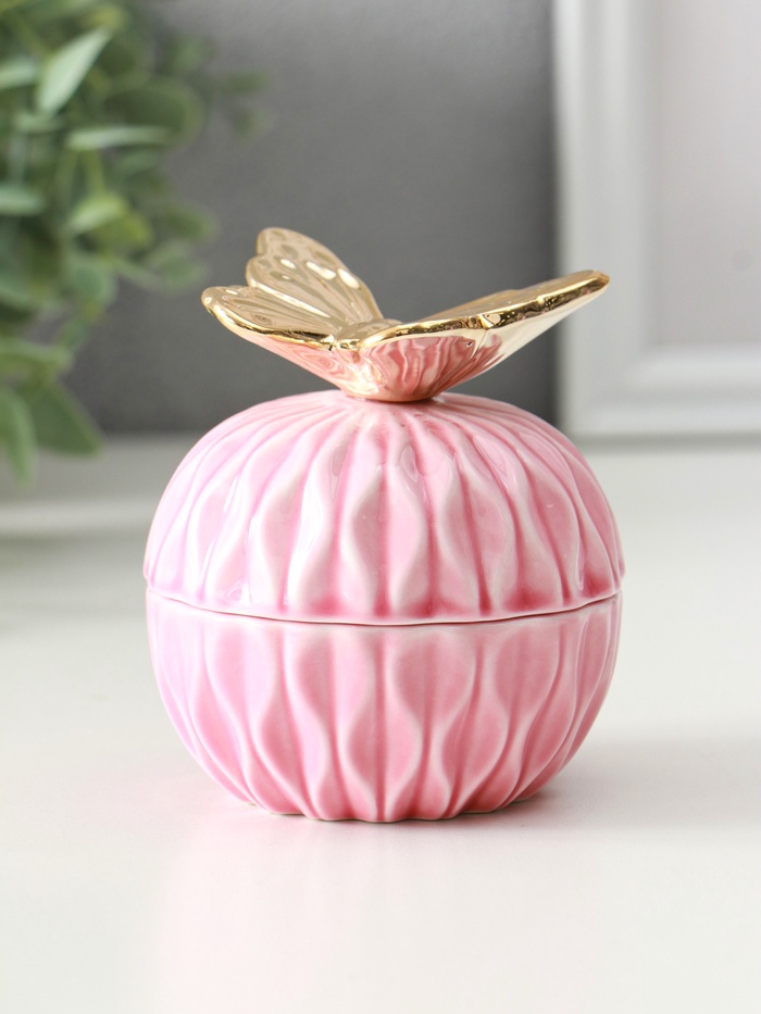 Шкатулка для украшений с крышкой «Золотая бабочка», розовая, 8×8×9 см — Характеристики