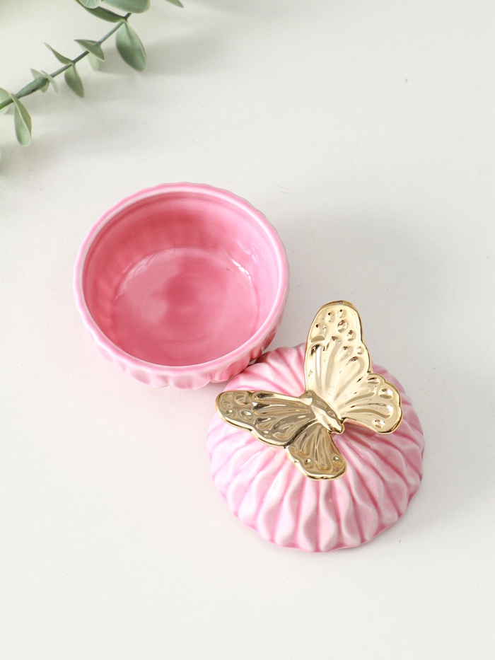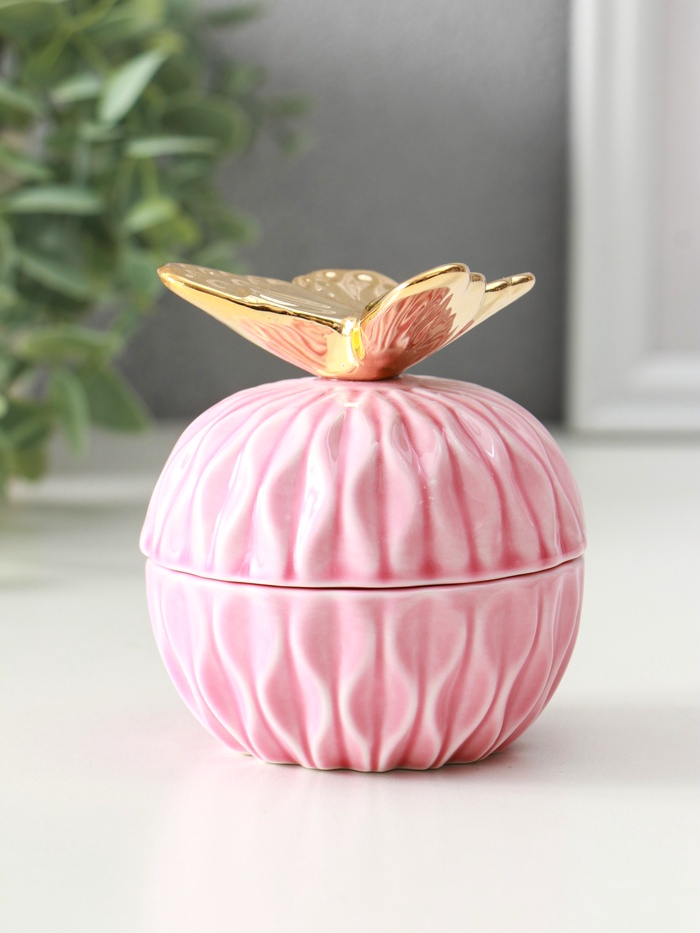 - Фигурная крышка с объёмной бабочкой добавляет шкатулке воздушности и изящества.